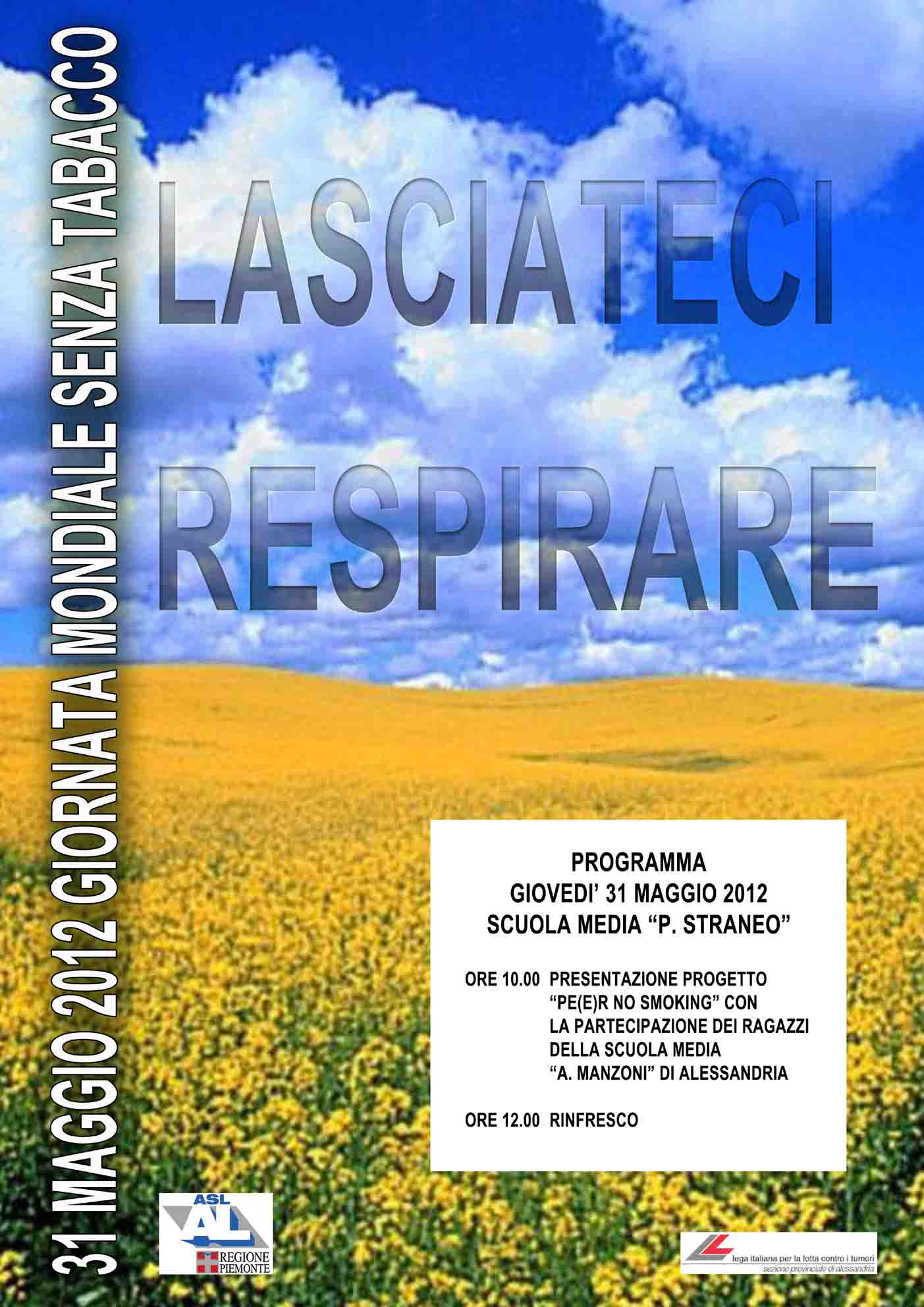 Giovedì 31 maggio 2012, ore 10.00, Scuola Media "P. Straneo" - via Sacco, 11 Alessandria: presentazione del progetto "PE(E)R NO SMOKING"